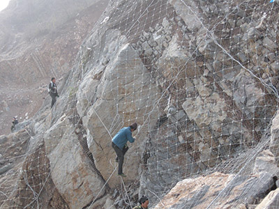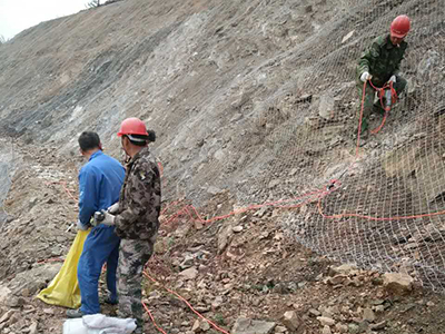 產品名稱:SNS主動邊坡防護網 材料:采用8的鋼絲繩(抗拉強度為1770Mpa,破斷拉力>40KN)編制并在結點處用專用“十字扣”固定而成,為防護網的主要特征構件之一,在主動防護中通過鋼絲繩網的覆蓋來實現邊坡的加固,其開放特征可以實現對坡面天然植被和植被生長條件的最佳保護,實現環境保護與災害治理的有機結合;在被動防護系統中,其柔性特征充分體現了“以柔克剛”的思想,實現崩塌落石的有效攔截。 產品特性: 雙層防腐(熱鍍鋅、裹塑),產品防腐壽命大幅提升。 生態、環保,產品采用不同的顏色使之與環境顏色融為一體,達到更加生態和環保的目的。